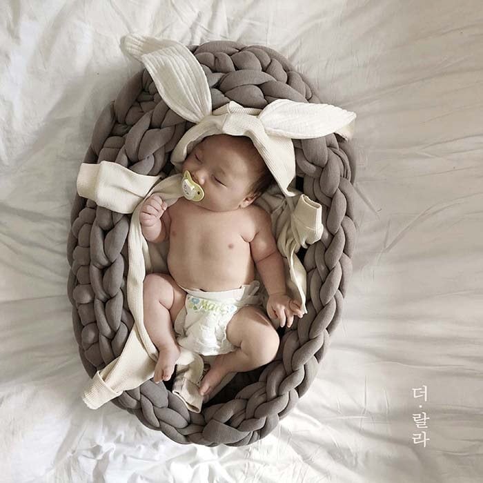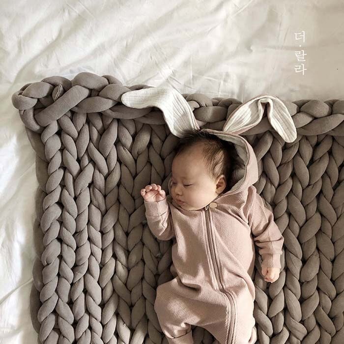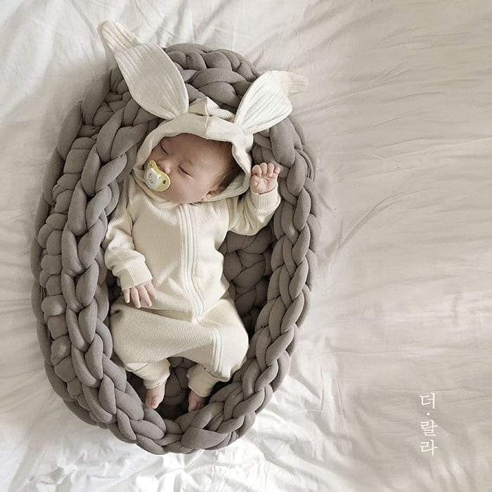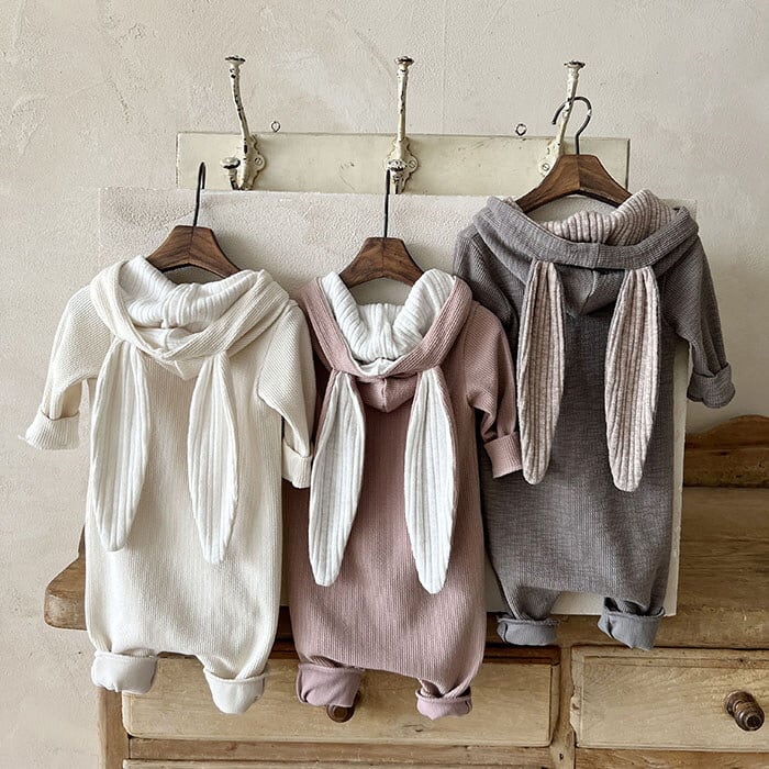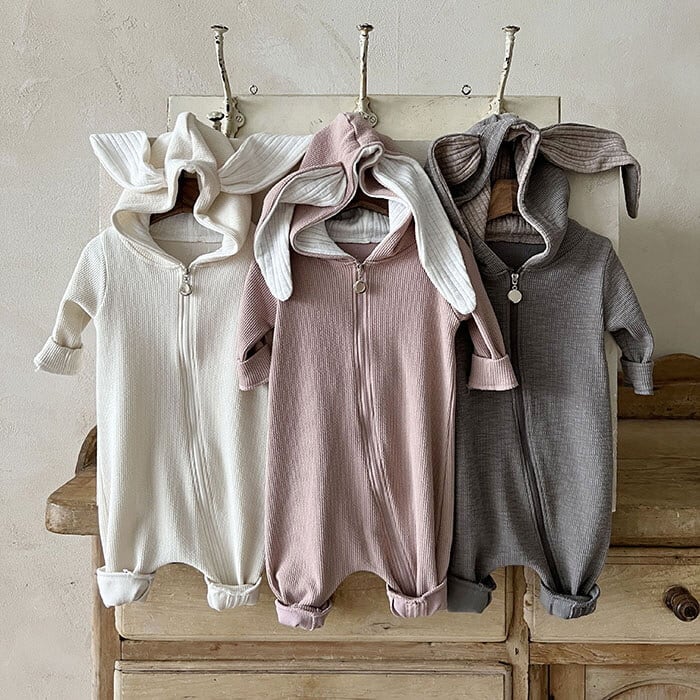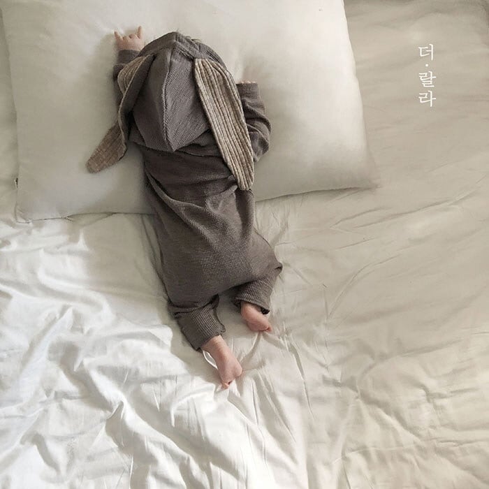 くすみカラーのうさぎ耳付きロンパース♡